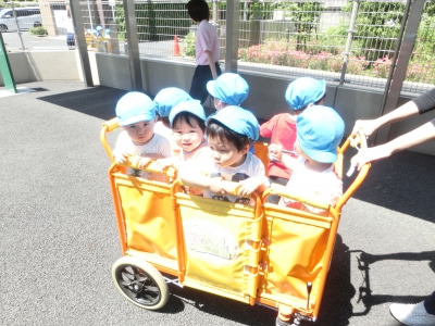 JUGEMテーマ:保育園 蒲公英さん 爽やかな天気の日にはお散歩です。 お散歩車(避難車)に乗って 理科大までいきます。 理科大のキャンパスでたくさん 走ってくるのかな? いってらっしゃ〜い(^▽^)/
