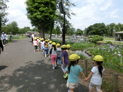 JUGEMテーマ:保育園 6/6(火) 年長薔薇組さんが、水元公園で 5/30から開催している菖蒲まつり へ行ってきました。 友達と手を繋ぎ、「きれいだね。紫が大好き♡」… なんて賑やかなお喋りが聞こえてきます。 水辺に浮かぶカルガモちゃんを発見したのかな? 「あっ、あそこにもいる〜!」 みんなも立派な「カルガモさん」です。 隊列移動は大得意(^▽^) 葛飾区のシンボル花は「...