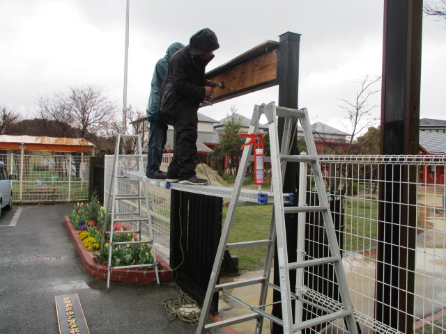JUGEMテーマ:保育園 4月1日から、「幼保連携型認定こども園 如水こども園」としてスタートします。 こども園になりますが、如水の理念は変わりません。 1号認定の児童も徐々に増えるかと思いますが、1号認定であろうと提供する保育は変わらず、 2号さんと同じ育ちが確保できる様、今まで通り保護者の皆さんや地域の方々と協力していきたいと考えています。 とりあえず、名前は変わりますので看板は付け替えました。 雨の中、付け替...