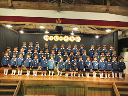 待ちに待った『発表会』。みんなこの日の為に、沢山の練習を重ねてきました。 オープニングは、3・4・5才児の合唱です。幕が開き沢山の保護者の姿に少し緊張した面持ちでしたが、みんな堂々と歌っていました。 0才児は、表現遊びをしました。お友達を意識する姿がとても可愛かったです。 2才児の劇は、‟三匹のヤギのガラガラドンとトロル”です。トロルとヤギになりきって、大きな声でセリフが言えました 1才児は、‟大きなかぶ”を発表しました。色んな役になりきって「うんとこ...
