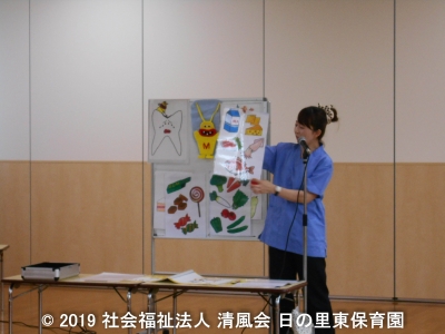JUGEMテーマ:保育園 先日、宗像歯科医師会から衛生指導員👩⚕️👨⚕️の方が子ども達に 「歯磨き指導」に来られました。 むし歯になりやすい食べ物や むし歯になりにくい食べ物を知ることができました。 そして、歯磨きの仕方を習い、みんなで音楽に合わせて練習しました。 むし歯にならない丈夫な歯を作りましょう。 😃 ※「社会福祉法人 清風会 日の里東保育園」のブログです。 当サ...