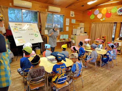 4才児の5月のクッキングは、‟玉ねぎの皮むき”です。 どんな料理に入っているのか? どんな匂いがするのか? 給食の先生から色々とお話を聞きました。 「6月の『お泊り保育』でも、玉ねぎを使うからね。」と聞いて、 大興奮していました 一人ずつ皮をむいていきます。真剣な表情で、上手にできていました。 どの子も嬉しそうに、楽しそうにむいていきます 「できた〜!」「みて〜!」と、自慢げに見せてくれました。 「次のクッキン...