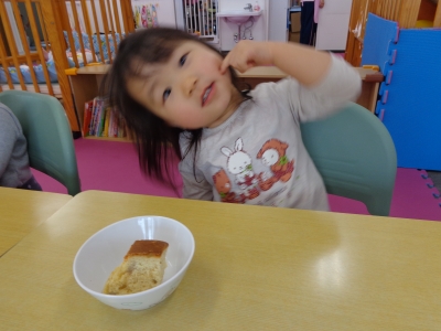 JUGEMテーマ:保育園 ユメ小規模保育園です 4月14日(木) おはようございます 昨日の雨もあがりました。 昨日は、給食で筍ご飯を頂きました。 旬のものは、良いですね。 子どもたちは、まだ意味がわからないかも知れませんが、大人が伝えていかないといけないでしょう。 今日も元気に子どもたちが登園してきています。 笑い声が園内に響いています。 昨日の園の様子です↓ 筍ご飯 今日も一日楽しみましょう!