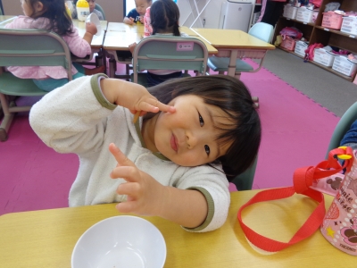 JUGEMテーマ:保育園 ユメ小規模保育園です 本日の園の様子です。 ジャングルジムに登っています 先生のお話を聞いています 朝の会 ポーズ! 体も横に 10時のおやつを食べています みんなで楽しんでいます〜