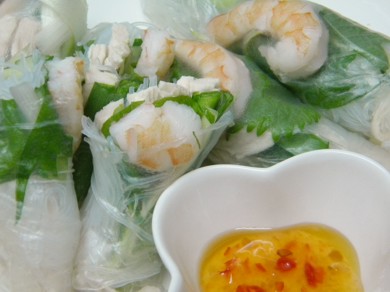 生春巻き、好きなんですよ(^O^)/ あんまりアレンジとかしないで、正統派のが。 ライスペーパーだし、春雨だし。 おなかいっぱいになるんですよ、意外と。 スイートチリソースだけじゃ、浅いというか薄いというか、なので、 うちの生春巻きは、スイートチリソースにナンプラーを足します。 食べる直前まで冷蔵庫で冷やして、 もっちりちゅるちゅる、ニラやネギがシャキシャキ、大葉で爽やかに。 やめられないです。いやぁ〜好きです。 ...