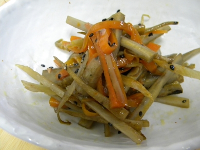 ◆キンピラごぼう 1行レシピ(1行レシピ、というのは「1行で書く」という意味ではなく)^o^( 詳細は書かないでざっくりと書いたレシピ、という意味で使います) 【材料】 ゴボウ 3本 ニンジン 1本 ごま油 本みりん ミツカン追い鰹つゆ 黒ゴマ 一味唐辛子 塩 【作り方】 ゴボウ・ニンジン5センチ程度の長さの千切り フライパンにごま油を熱し炒める。 水を入れる。 みりん入れる。 追い鰹つゆ回し入れる。 炒め煮する。 水分が...