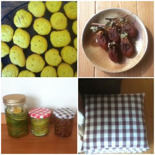 ハロウィンにカボチャクッキーを焼いたり、いただいた渋柿で干し柿を作ったり、無農薬のレモンと新生姜が手に入ったので、はちみつレモンと生姜煮を作ったり、ざぶとんカバーを作ったりしているうちに、もう11月も半ばになろうとしています。急に寒くなってきたので、風邪をひかないように、皆様お身体ご自愛ください!^^急に脚光を浴びたざぶとん!先月のホームパーティーで、いつもより人数が多くて椅子が足りないのをカバーするために久しぶりに出してきたら、フローリングの床で座る時にふかふか気持ちいい!重ねて収納できるし...