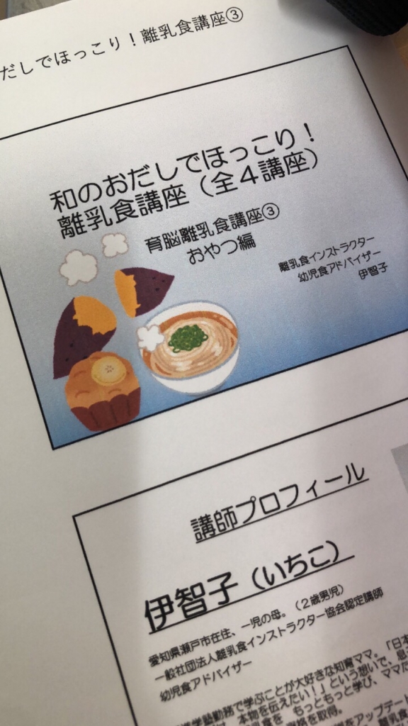 JUGEMテーマ:離乳食 こんにちわ。 愛知県瀬戸市在住、離乳食インストラクターの伊智子です。 昨日は、岡崎ママユメさんで 「和のおだしでほっこり!離乳食講座」をしてきました。 全4回講座の3回目のおやつ講座 今回も満席18人のママさんが参加をしてくださいました。 1回目からずっと参加してくださる方、 前回も参加をしていただいた方もいて 本当にうれしかったです。 1歳からのおやつ講座だったので、今...