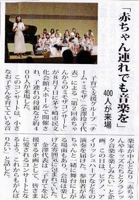 JUGEMテーマ:子育て支援 8月に行った 赤ちゃんからお越しいただける ミモザコンサートの様子を タウンニュースに掲載していただきました。 そしてそれに気がついていない私に ピアノ君のママが デジタル化して 早速送ってくださいました。 大事なピアノ教室を運営しながらの 子育て支援活動なので 皆さまにご迷惑をおかけしないようにと 心がけていますが このように 逆に応援していただいていることに 本当に感謝の気...