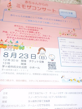 JUGEMテーマ:子育て支援 来月8月23日(日) 午後1時から 茅ヶ崎市文化会館にて 赤ちゃんからお越しいただける音楽会 ミモザコンサート 赤ちゃんにもお越しいただける 音楽会を開いてみたいという 強い思いのもと ミモザコンサート開催に向けて 手探り状態ながらも たくさんの皆様にご協力を頂きながら 準備を進めている毎日。 開催決定をし...