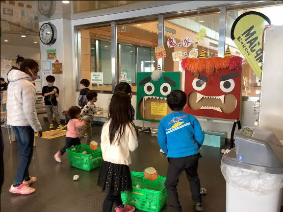 JUGEMテーマ:児童館 節分にちなんだ《的あてゲーム》をしました。 大きなお口に狙いを定めて ピッチャーモーションで投げる子もいれば 「鬼さん豆どうぞ!」とばかりに優しく放る子など、 思い思いの楽しみ方をしていました。 「鬼は外〜!福は内〜!」 豆を投げた後はちゃんと豆拾い。 みんなに福が訪れますように!! 《ミトンの会》 育児中のお母さん達にのんびり過ごしてもらう時間です。 (主催:NPO法人ワーカーズ・コレクティブちろりん村) 会のはじ...