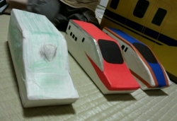 JUGEMテーマ:子供の遊び・創造性 JUGEMテーマ:手づくり玩具であそぼう 牛乳パックで新幹線を作ってみよう 以前に作った新幹線↑は先頭部分が曲線でしたが、簡単に作れるように直線にして、型紙を作ってみました。 ○型紙をA4用紙 (それ以上の用紙でもOK!) に、 フチなし設定でA4の紙面一杯にして印刷する。 牛乳パックの底の辺3つ分とA4の短い辺がぴったり同じ長さだった! 画像をクリックで拡大 ○ 型紙の実線 ━ を切り、点線 ‥‥ を谷折りに折り筋をつける。 A4用紙に印刷したときは、紙の端の線は次の...