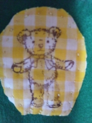 JUGEMテーマ:子供の遊び・創造性 【 知育玩具 】を手作りしています。 布や、ウォッシャブルフェルトを使って、幼児向きの「 絵合わせ 」を。 フェルトのカードの表面を「 アップリケ 」で、飾ることに。 布用スタンプで、もようを染め、アイロンで色を定着します。 イヌのアップリケですが、 布地と、染色の色のバランスが悪くて・・・ かわいいものの、少しめだたないことになってしまいました。 で、上から刺繍して「 黒い毛並 」を再現です。 サイズが「 子犬 」なのが、ちょっと残念でした。