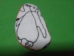 JUGEMテーマ:子供の遊び・創造性 せっかくのかわいい「 アップリケシート 」も、白っぽくては、 汚れが心配になるだけです。 どうしたものかと、思案の後は、 もようの「 ペンギンの腕・背中 」に、色をプラスすることに。 トレーシングペーパーで形を写し、 ブルーのフェルトでアップリケすることにしました。