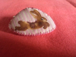 JUGEMテーマ:子供の遊び・創造性 動物編の「 アップケリーシート 」も、いろいろ増していきたいです。 今回は、元気いっぱい。 飛び跳ねてる「 うさぎ 」くんです。 かたちも変化させたくて、角+カーブの形をイメージしましたが・・・ 実際は、作り( ぬいしろを縫い縮め )にくくて。 カーブのある数だけ、縫い代に無理な「 切り込み 」をいれる必要があって・・・ 試作をしても、しっくりしません。 結局、まるっぽい三角に、することにしました。
