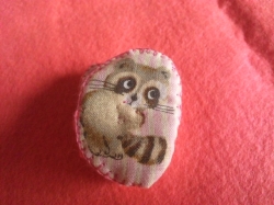 JUGEMテーマ:子供の遊び・創造性 今日のもようは「 たぬき 」くんです。 ぷっくりした、お腹としっぽが、チャーミングでしょう。 もう少し、余白があれば・・・ もようが、かつかつ、ですね。 芯代わりに中に使った、フェルトの大きさが合わなかったせいですね。 小さすぎたようです。