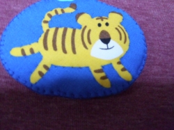 JUGEMテーマ:子供の遊び・創造性 今度の、動物の「 アップリケシート 」は、 最初から、作りやすい形にしました。 顔の丸い「 トラ 」くんでしたから。 しっぽも入れて、楕円形にしました。 ウラ面に縫い付ける、スナップも「 在庫切れ 」の心配も・・・ 追加、購入しないと。