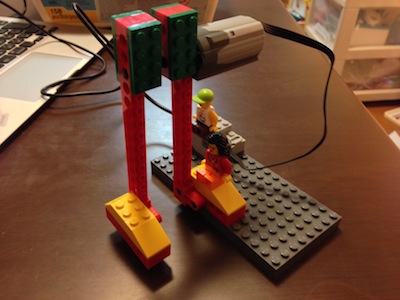 今日はまとまった時間が取れたので、のんとレゴエデュケーションWeDoで遊びました。 今日のアクティビティは「ゴールキッカー」。 ボールを蹴る足だけのレゴ作りです。 このアクティビティは、使うパーツが少ないので、ちょっと手伝った部分もありますが、概ねのん一人で組み上げることが出来ました。 若干ショボいのですが、完成作品の写真です。 人形は遊びでくっつけてます。 プログラムの方は、予め用意されているアクティビティに従うと、単に足を前に蹴るだけでつまらないので、一旦振りかぶってから蹴り上げて、...