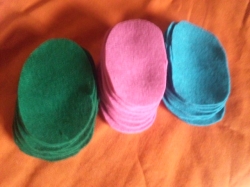 JUGEMテーマ:子供の遊び・創造性 いつもと違う「 材料 」を使うと・・・ 作りづらいですね。 フェルトと、フェルトの間にはさんでいる「 キルト綿 」に、針が通りにくくて。 ちょっと「 厚み 」も、煩わしいことで。 残布利用の「 キャラクターの布 」でしたから、5 種類( 10枚 )しか、用意できなくて困りました。 ちょっと少なすぎ。 で、また色違いの「 キャラクター布 」を、買い足すことに。 しかし、今度は、表側に使う「 アップリケ用の布 」が、足りない。 おまけに、いつも...