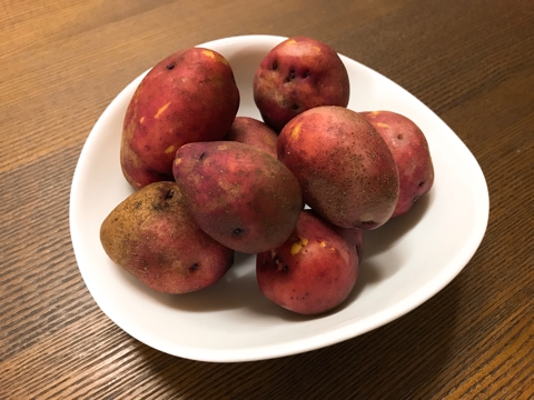 JUGEMテーマ:ふるさと納税 [V-012]加藤さんのじゃがいも4種12kgセット(インカルージュ固定) 北海道 河東郡 上士幌町(4) じゃがいも4種(1:配達時) 今回はインカルージュです。 ルージュ(rouge:フランス語で赤)というだけあって外皮は赤です。そのまま訳すと「赤いインカ」となりますが、実際のところは「赤い『インカのめざめ』」です。 中身は「インカのめざめ」同様、綺麗な黄色です。 いろいろな食材と盛り付けられました。ソーセージ2種、ブロッ...