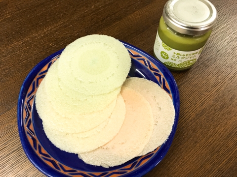 JUGEMテーマ:ふるさと納税 [S-022]十勝しんむら牧場のミルクジャム・ クロテッドクリームセット 北海道 河東郡 上士幌町(2) クロテッドクリーム(1:配達時) ミルクジャムは先ずは抹茶からです。何に使用するかというと屋台でよく見かけるアレです。 そうです。これです。なんという名前だったか調べたところ、予想通り「ふわふわせんべい」でした。ミルクジャムが届いてから慌てて買ったものです。 塗ってみました。普通の練乳に比べるとやや固いような気...