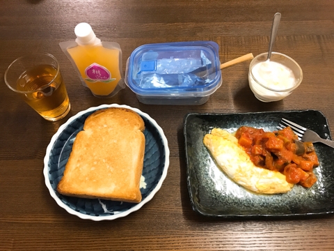 JUGEMテーマ:ふるさと納税 (A-29)桃 Aセット 宮崎県 延岡市(5) No.079 みどりバター詰め合わせ【2pt】 大分県 大分市(13) 桃セット(1:配達時)、みどりバター(1:配達時) 今回は桃セットの桃ジャムとみどりバターです。この時、桃セットの桃は既に食べ終わっていました。 この日の朝食です。たくさん並んでいるようですが、実質はパンとオムレツとヨーグルトです。オムレツにかかっているのはソースというよりラタトゥイユでしょうか? パンに塗る桃...