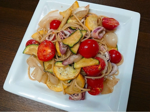 JUGEMテーマ:ふるさと納税 イタリア野菜(西洋野菜・珍野菜)セットラージ(14品)(あいちゃん農園) 佐賀県 神埼郡 吉野ヶ里町(5) ズッキーニ B12.黄玉ねぎ【20kg入り】 北海道 富良野市(56) イタリア野菜(1:配達時)、黄玉ねぎ(1:配達時) イカとズッキーニとプチトマトとタマネギのパスタです。具材の名前を並べただけですね。ズッキーニは緑と黄色の二種を使用です。 カラフルニンジンのときにも思いましたが、2色のズッキーニを使って「色とりどり」に...