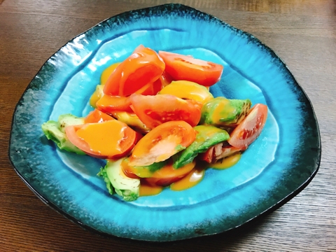 JUGEMテーマ:ふるさと納税 A−2 とまと(2016) 千葉県 長生郡 一宮町(9) トマトとアボカドのサラダです。トマトと何かのサラダというパターンが定着しています。トマトがそれだけサラダに向いているということでもありますが、サラダ以外に使うのは手間がかかるということでもあります。皮を剥くのも結構面倒ですからね、サラダに比べたらの話ですけれど。トマト(2016)ではこれまで料理は7回アップしていますが、火を通したのは1回のみで後は全てサラダでした。 皿が青いので赤と緑が映...