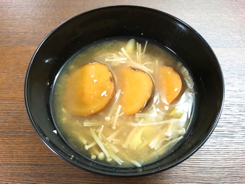 JUGEMテーマ:ふるさと納税 138.にんじん芋(さつまいも) 鳥取県 東伯郡 北栄町(11) にんじん芋のみそ汁です。エノキが入っています。僕にとってエノキは味噌汁の具としては好きな部類に入るのですが、では一般的にどうなのかということを調べてみました。 RECIPOというポータルサイトによると、 1位 豆腐 2位 わかめ 3位 ねぎ 4位 油揚げ 5位 大根 だそうです。10位以内にサツマイモとエノキはランクインしていませんでした...