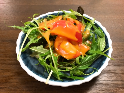 JUGEMテーマ:ふるさと納税 A−2 とまと(2016) 千葉県 長生郡 一宮町(6) 「トマトと水菜のサラダ」です。 個人的には水菜といえば鍋料理に使うものというイメージです。残念ながら僕は水菜を使う鍋があまり好きにはなれませんでした。そもそも水菜がそれほど好きではなかったのですが、我が家というか実家では鍋のときに水菜を他の葉野菜と同時に使うことが少なく、それで水菜の鍋があまり好きではなかったのです。僕は、鍋では白菜とか春菊とかを食べたかったんですね...