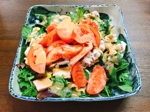 JUGEMテーマ:ふるさと納税 A−2 とまと(2016) 千葉県 長生郡 一宮町(4) 「冷しゃぶサラダ」です。トマトの場合、サラダが多くなるのは避けられそうにありません。というか今回はサラダって言わなくてもいいんじゃなだろうか?「冷しゃぶ」で良いですよね? でもこれだけの量のトマトがのっていたら、サラダと言いたくなる気持ちもわかります。豚しゃぶがほとんど隠れていますもの。それに赤いトマトは目立つんです。下のリーフも山盛りです。冬に「冷しゃぶ」っていうメニューもど...