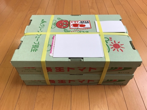 JUGEMテーマ:ふるさと納税 A−2 とまと(2016) 千葉県 長生郡 一宮町(1) 2016年申し込み分です。2015年に続き納税しました。届いたのは1月中旬でした。 2段重ねです。8kgですから。 去年も今年もとっても綺麗です。これが×2です。 トマトは根菜なんかに比べると悪くなりやすいですし、8kgは普通の冷蔵庫に入りきる量でもありません(入れたら他の食材が入らなくなります)。我が家は全員がトマト好きではありますけれど、夏場であればこれだけのトマト...