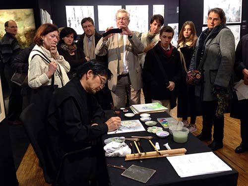 SNBA展 最終日 今日も描いています。 花の名前をフランス語に訳すのが大変な様子。 日本画家の神出さんも日本からいらっしゃってました。 パリ語学センターのギャラリーにて。 通訳としてお世話になった九鬼さんが関わっておられるギャラリーに伺いました。 丁度、フランス人の画家CALIXTEさんの個展が開催されていました。 日本画に魅せられて、金箔や岩絵の具を使用しているそうです。 右からマリア書房の高野さん、神出さんのお母様、神出さん、個展をされているCALIXTEさん。 ...