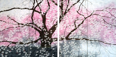 「紅韻 I, II」88×87, 88×87? 二点連作です。 奈良県宇陀市にある又兵衛桜です。 後藤又兵衛が植えたと言われているが、真意は謎です。 人は、いなくなっても、この桜が命をつないでいるようで、 多くの人を呼び寄せ、物語りを語っています。 JUGEMテーマ:美術・工芸