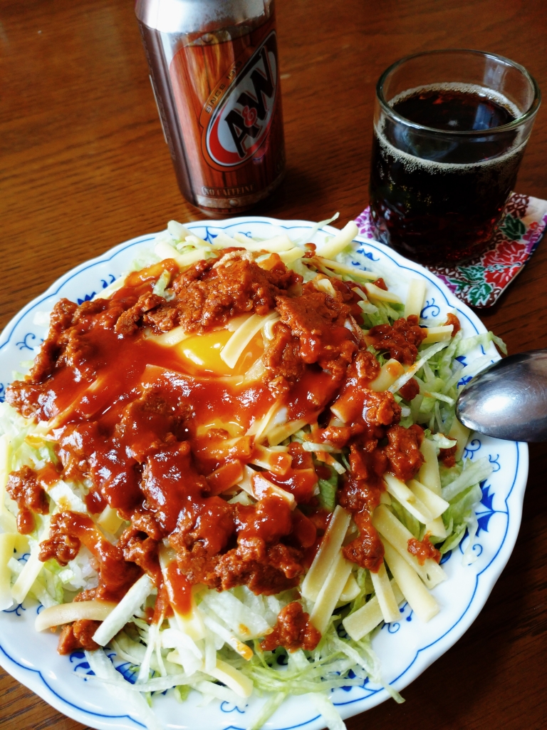 JUGEMテーマ:ちゅら沖縄 1人飯 家族は仕事。 昼飯にタコライスとルートビア 家で沖縄フードを楽しんでます。