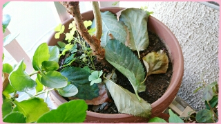 JUGEMテーマ:ベランダガーデニング 今日は朝から暑いです。 外に出るとモワァ〜ッと顔面が暑い。 晴れた空は気持ちいいですがこの暑さには 若干げんなりしてしまいます。(´-`) 昨夜の東京の夜は雨と強めの風でだいぶ 荒れてましたが朝には台風は去りました。 夜中の風で桜の葉っぱがたくさん散った様子。 普段も時々1枚、2枚は散りますが、 こんなに散ったのは初めてだと思います。 桜の鉢に、クローバーが共存してます。 かわいいのでそのままにしてあります。 栄養取られちゃう...