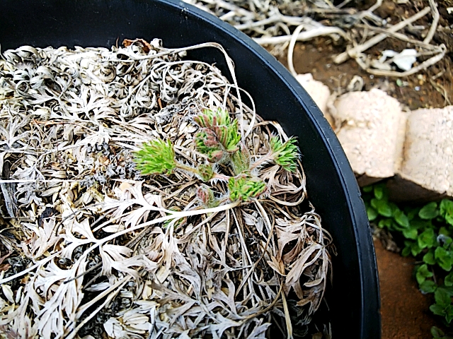JUGEMテーマ:山野草 鉢植えのオキナ草。 越冬成功しているようです。 このオキナ草、まだ一度も咲いたことがありません。笑 今年こそ咲いてくれるかな!