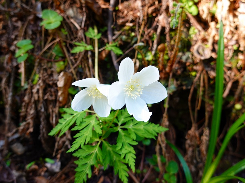 JUGEMテーマ:山野草 今までに登った山の中で権現山は印象に残らない山の一つだった。以前、権現山に登った時は真夏で滝の水量が少なく迫力がなかった。花もほとんど目に着かず、ただ登って下りて来ただけの山だった。 今日は…?滝は水量が豊富で迫力があり、花もてんこ盛り。残った、残った、めっちゃ印象に残った、今日の権現山は。 権現山へ 二輪咲きのイチリンソウ モミの大木