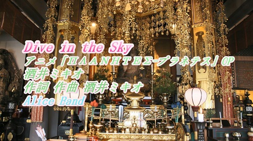 JUGEMテーマ:3Dprinter アニメ「ΠΛΑΝΗΤΕΣ-プラネテス」OPから「Dive In The Sky」をアリスバンド、おにいさんチーム、ピアノ伴奏、ショートバージョンで歌ってみました。 日本語の字幕あり。伴奏は、オルガン調にしています。 オリジナルは、酒井ミキオ が歌っています。作詞 作曲 酒井ミキオ。 ではまたーー。(^^)/~~~