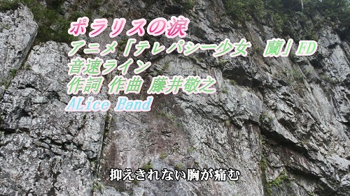 JUGEMテーマ:3Dprinter J-POP「音速ライン」から「ポラリスの涙 」をアリスバンド、おにいさんチーム、ピアノ伴奏、FULLバージョンで歌ってみました。 日本語の字幕あり。伴奏は、ギター調にしています。 オリジナルは、音速ラインが歌っています。 作詞 作曲 藤井敬之。この曲は、アニメ「テレパシー少女 蘭」のEDでした。 ではまたーー。(^^)/~~~