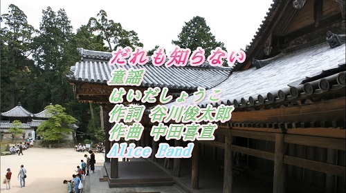 JUGEMテーマ:3Dprinter 童謡から 「だれも知らない 」 をアリスバンド、おねえさんチーム、ピアノ伴奏、FULLバージョンで歌ってみました。 日本語の字幕あり。伴奏は、学校オルガン調にしています。 作詞 谷川俊太郎、作曲 中田喜直。 ではまたーー。(^^)/~~~