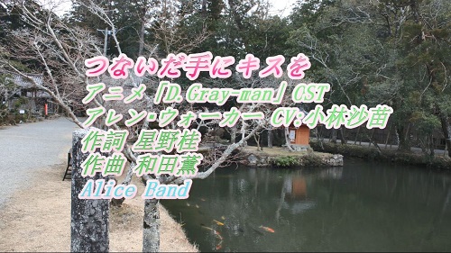JUGEMテーマ:3Dprinter アニメ「D.Gray-man」OSTから 「つないだ手にキスを」 をアリスバンド、おねえさんチーム、ピアノ伴奏、FULLバージョンで歌ってみました。 日本語の字幕あり。伴奏は、ギター調にしています。 オリジナルは、アレン・ウォーカー CV:小林沙苗 が歌っています。 作詞 星野桂、作曲 和田薫。 この動画は、ユーチューブに登録しようとすると、著作権メッセージが出ます。 権利主張企業は、1社で、匿名企業?で正当性の確認ができません...