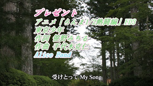 JUGEMテーマ:3Dprinter アニメ「らんま1/2熱闘編」ED3から 「プレゼント」 をアリスバンド、東方チーム、ピアノ伴奏、ショートバージョンで歌ってみました。 日本語の字幕あり。伴奏は、ギター調にしています。 オリジナルは、東京少年 が歌っています。作詞 笹野みちる、作曲 手代木克仁。 この動画は、ニコニコ動画でのみ公開です。 ユーチューブに登録しようとすると、著作権メッセージが出ます。 かつ、権利主張国は、複数の紛争地域を含みますのでユーチューブで...