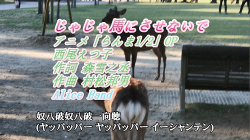 JUGEMテーマ:3Dprinter アニメ「らんま1/2」OPから 「じゃじゃ馬にさせないで」 をアリスバンド、東方チーム、ピアノ伴奏、ショートバージョンで歌ってみました。 日本語の字幕あり。伴奏は、シンセサイザー調にしています。 オリジナルは、西尾えつ子 が歌っています。作詞 森雪之丞、作曲 村松邦男。 この動画は、ユーチューブに登録しようとすると、著作権メッセージが出ます。 権利主張企業は、2社で、匿名企業?で正当性の確認ができません。 なの...