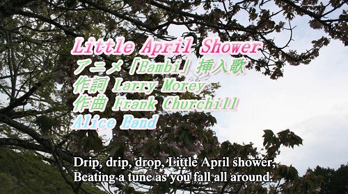 JUGEMテーマ:3Dprinter アニメ「Bambi」挿入歌から 「Little April Shower」 をアリスバンド、東方チーム、ピアノ伴奏、FULLバージョンで歌ってみました。 英語の字幕あり。伴奏は、学校オルガン調にしています。 作詞 Larry Morey、作曲 Frank Churchill。この曲は、1942年に発表されました。 ではまたーー。(^^)/~~~