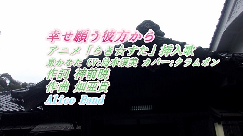JUGEMテーマ:3Dprinter アニメ「らき☆すた」挿入歌から 「幸せ願う彼方から」 をアリスバンド、東方チーム、ピアノ伴奏、ショートバージョンで歌ってみました。 日本語の字幕あり。伴奏は、ギター調にしています。 オリジナルは、泉かなた CV:島本須美 カバー:クラムボン が歌っています。 作詞 神前暁、 作曲 畑亜貴。カバーされた後、紹介用MVが話題になり、注目されました。 この動画は、ユーチューブに登録しようとすると、著作権メッセージが出ますが...