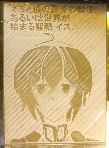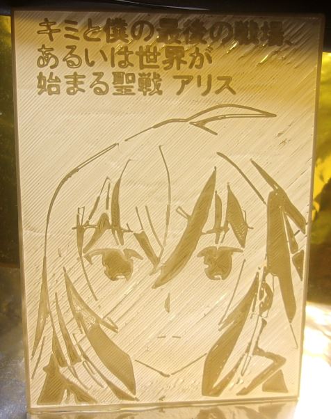 JUGEMテーマ:3Dprinter アニメ キミと僕の最後の戦場、あるいは世界が始まる聖戦より アリスのSTLプレートデータ印刷です。 あ、文字の印刷が・・ロッドの清掃とか、エクストルーダーのギア確認とかしなければ・・ ま、とりあえずは、こんなところと思います。 ではまたーー。(^^)/~~~