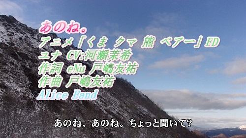 JUGEMテーマ:3Dprinter アニメ「くま クマ 熊 ベアー」EDから 「あのね。」 をアリスバンド、おねえさんチーム、ピアノ伴奏、ショートバージョンで歌ってみました。 日本語の字幕あり。伴奏は、バンジョー調にしています。 オリジナルは、ユナ CV:河瀬茉希 が歌っています。作詞 eNu 戸嶋友祐、作曲 戸嶋友祐。 耳コピが甘いところもありますが、こういうバージョンということでヨロシクです。 空き時間、即席で作成したわりには、聞けるレベルなのでUPしています。 ...
