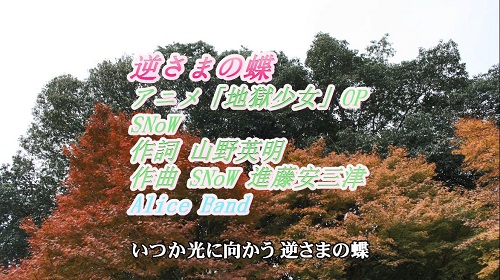 JUGEMテーマ:3Dprinter アニメ「地獄少女」OPから 「逆さまの蝶 」 をアリスバンド、おねえさんチーム、ピアノ伴奏、ショートバージョンで歌ってみました。 日本語の字幕あり。伴奏は、ギター調にしています。 オリジナルは、SNoW が歌っています。作詞 山野英明、作曲 SNoW 進藤安三津。 ではまたーー。(^^)/~~~
