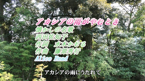 JUGEMテーマ:3Dprinter 懐かしの名歌から 「アカシアの雨がやむとき」 をアリスバンド、おねえさんチーム、ピアノ伴奏、FULLバージョンで歌ってみました。 日本語の字幕あり。伴奏は、ギター調にしています。オリジナルは、西田佐知子 が歌っています。 作詞 水木かおる、作曲 藤原秀行。この曲は、昭和35年1960年に発表されました。 歌手の 西田は、代表作として「コーヒールンバ」「エリカの花散るとき」などがあります。 この動画は、ニコニコ動画でのみ公開です...